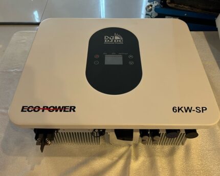 The Eco Power 6kW-SP is a high-efficiency hybrid solar inverter designed for residential and small commercial applications. It delivers 6000W output power with dual PV input and 2 MPPT trackers, ensuring optimal performance with high-power solar panels.