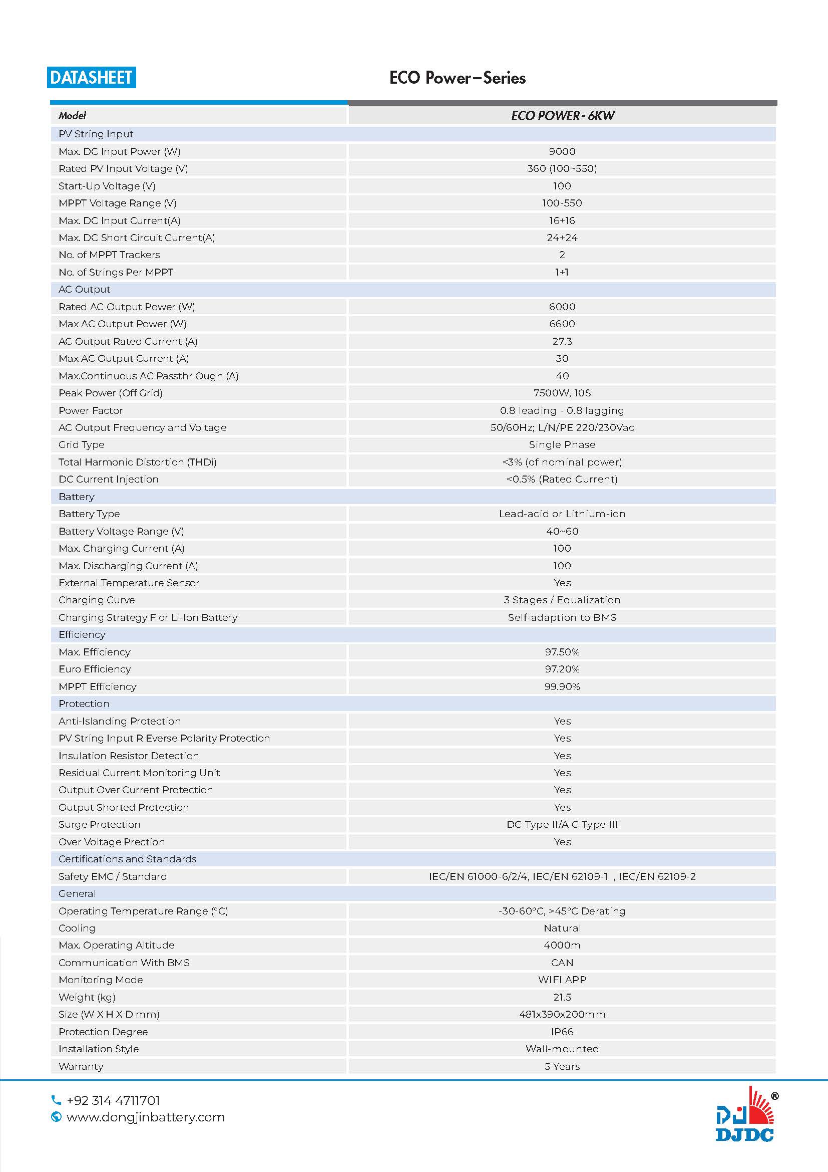 DJDC 6KW ECO Power Hybrid Solar Inverter with PV9000 | Single Phase | IP66